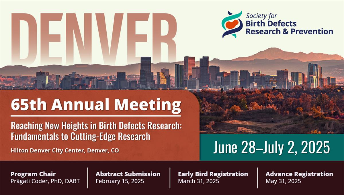 SOT members involved in reproductive and developmental toxicology and related fields are encouraged to submit abstracts for presentation at the Society for Birth Defects Research and Prevention (BDRP) Annual Meeting taking place June 28–July 2, 2025, in Denver, Colorado. Abstracts are due February 15, 2025.
