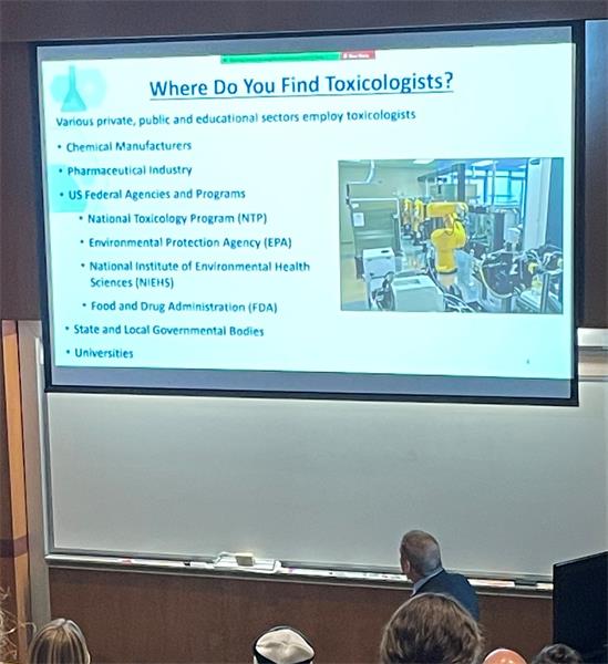 Both Tim and I were pleased with how the presentations went, and the engaging question-and-answer session that followed. We received positive feedback from faculty and students concerning our presentations and the overall visit. I do feel that we met our objective of introducing toxicology as a potential career path to the students and based on some interactions that both Tim and I had during our visit feel that we sparked some genuine interest in many of the students that attended the event.